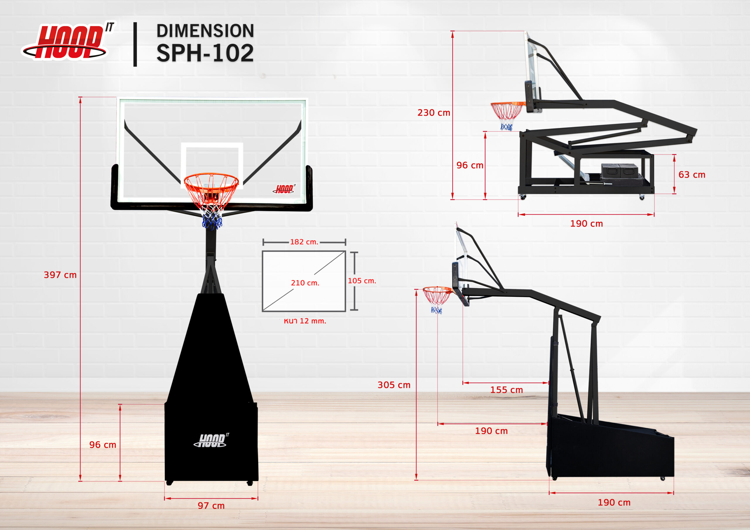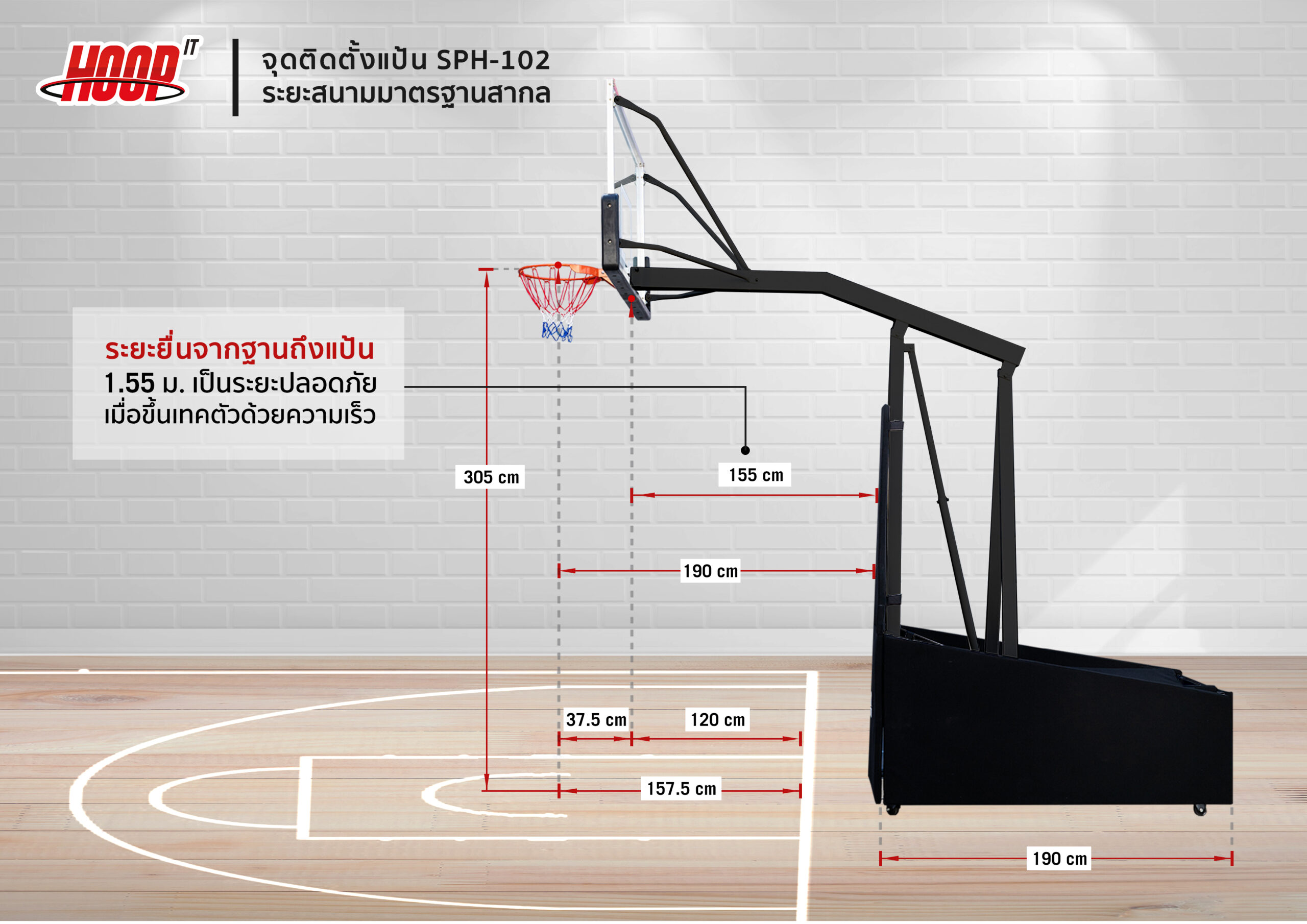3.4 ความสูงจากฐานถึงห่วงอยู่ที่ 3.05 เมตร ตามมาตรฐานการแข่งขัน